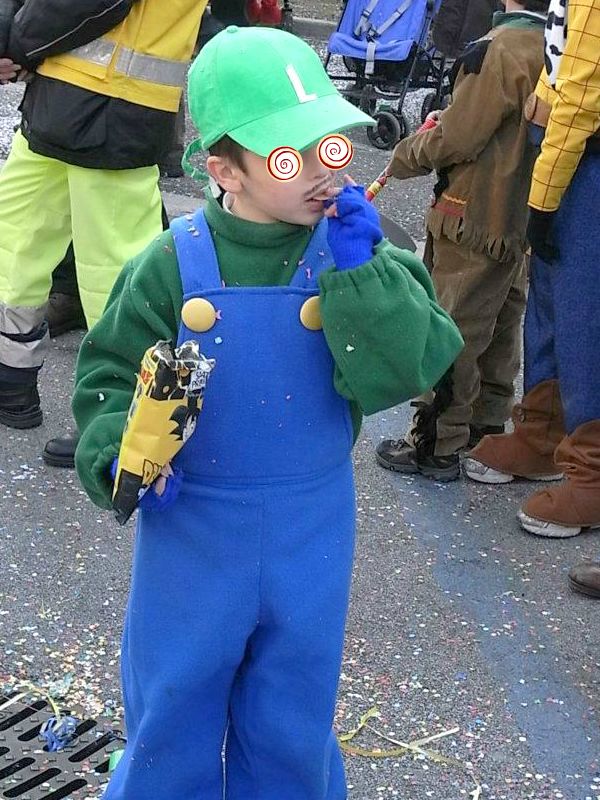 人気があるのは動物の着ぐるみ。顔もアニマルペイントをして、着ぐるみでヨチヨチ歩く姿は可愛いいのなんの!赤ちゃんたちもわけがわかっていないようですが、なんだかご満悦な表情をしています。ベネツィア風にレトロなお化粧をしている女の子や、キャラクターの着ぐるみを着ている子供も沢山いました。長くつ下のピッピに扮した女の子や、イタリアでも大人気のゲーム「スーパーマリオ」のルイージに扮した男の子も、すっごく可愛くてそのままCMに出られそうでした。