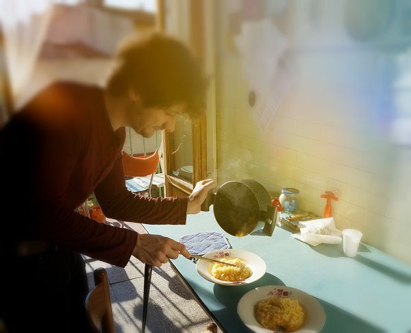 - かぼちゃとねぎの甘味が効いた見た目も黄色でかわいいリゾット、どうぞお試しください。