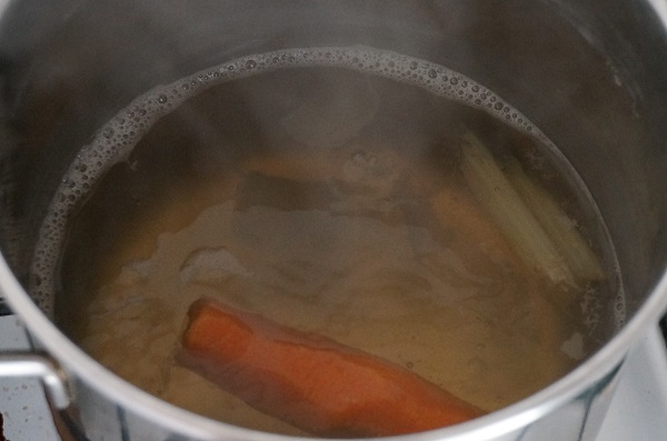 - 2.基本の野菜ブイヨン(作り方は上記の材料のブロード部分をクリックするとレシピが見られます)を温めて、常に沸騰状態を保ちます。