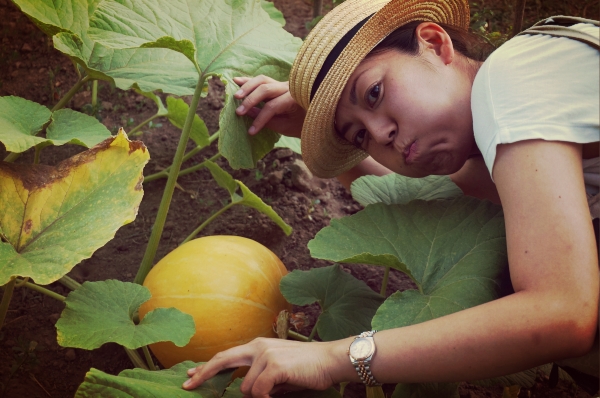 - この写真は2014年8月中旬に撮影。大きなかぼちゃが旬を迎えていました。