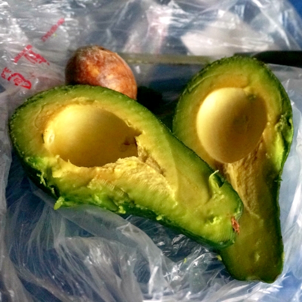 - 1.アボカドは種をくり抜いて中身をスプーンでかきだします。