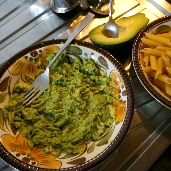 Togliete buccia e nocciolo all’avocado, schiacciatelo bene con la forchetta in una zuppiera, aggiungete il formaggio grattugiato, l’olio quanto basta, il sale e il pepe e mescolate. Nel frattempo fate cuocere la pasta, scolatela e conditela col sugo di avocado, irrorando con altro olio se necessario.