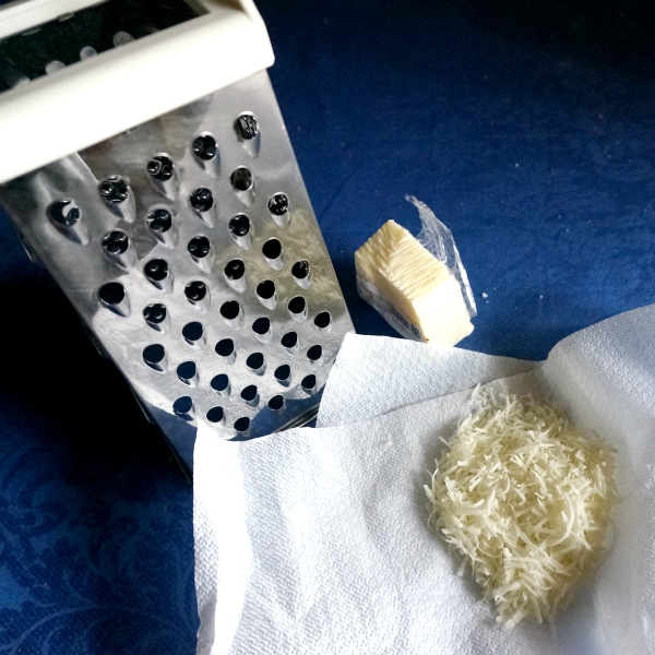 - 3.ペコリーノチーズを削ります。無ければパルミジャーノチーズでもOKです。
