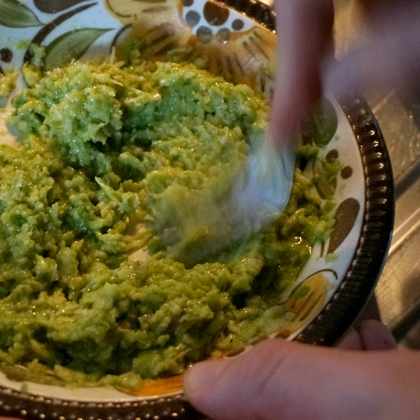 - 2.フォークでつぶしてペースト状にします。火を使わないソースなので夏におすすめ!