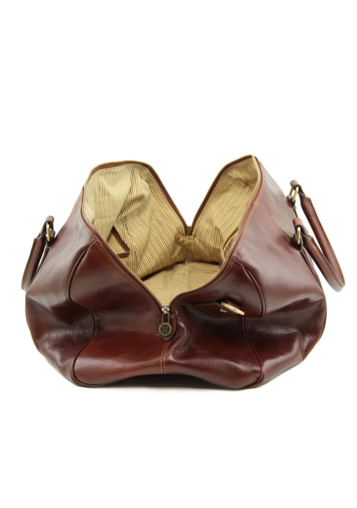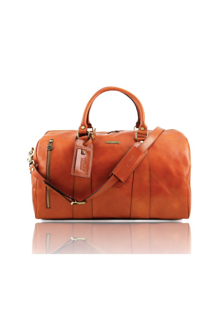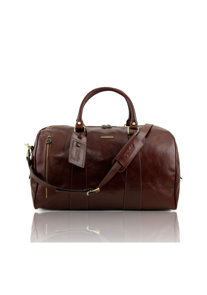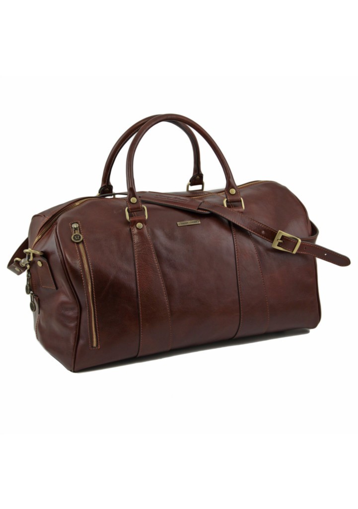 本牛革ベジタブルタンニンレザーの旅行ボストンバッグ・表ポケットあり – Lサイズ TL VOYAGER