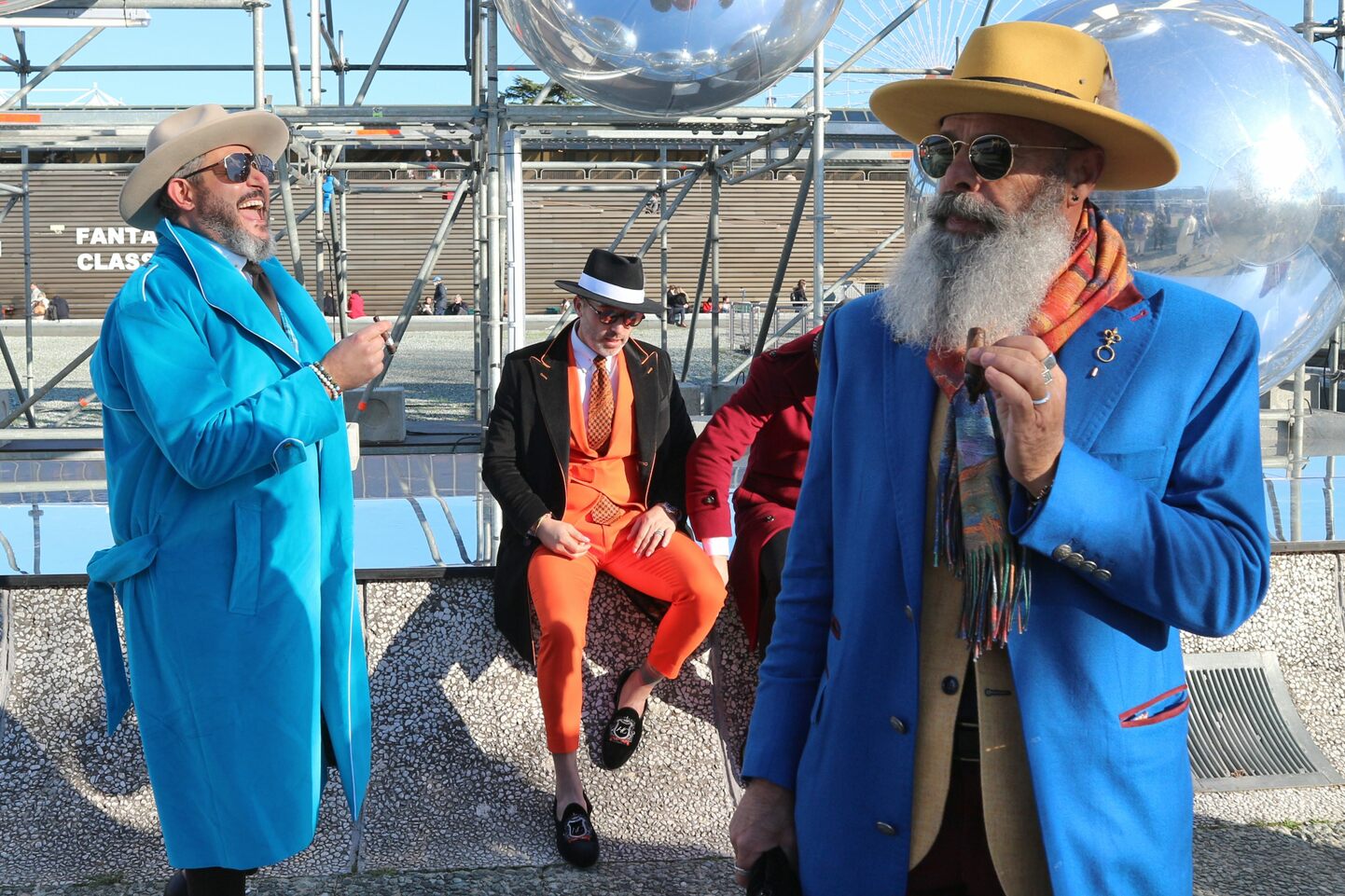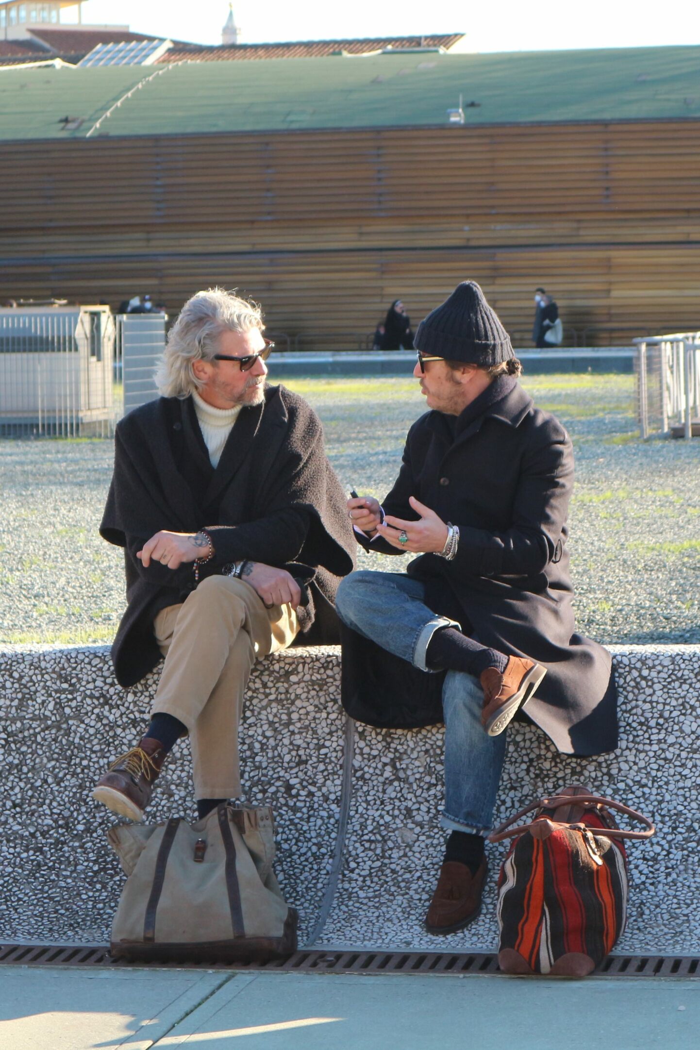 最後に、ピッティ・ウオモ恒例の「ピッティ・ピープル」たちのスナップ写真をお届けします。数は少なかったですが、それでも彼らの華やかな存在は今回のように閑散とした会場の雰囲気を盛り上げていました。