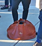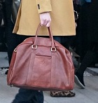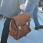 また今回のピッティ・ウオモでは、前回88回ではクラッチバッグはすっかりブームを去り、ほとんど見かけませんでした。逆によく目にしたのが、大型の本革バッグ。旅行バッグかと見まがうほどの大きさのビッグサイズが流行の兆し。秋冬ファッションはコートなどでかさばり、全体的にシルエットが大きくなるため、大きな革バッグでもバランスが取れます。何をそんなに入れるものがあるのか?というほどの大きさですが、今年の秋冬の要チェックアイテムのようです。