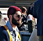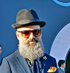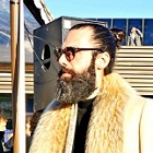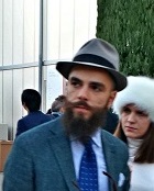 前回ブログポストにも登場している男性。マフラーとサングラスを加えるだけで、ガラリと雰囲気が変わります。ハット&ひげ、流行ど真ん中のスタイル。