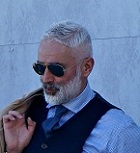 イタリア人の洋服のサイズの選び方は日本人とはずいぶん違うようです。身体のラインを出すピチピチ気味なベストの着こなし。