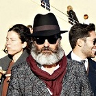 東京の表参道あたりを歩いていそうなファッションの男性。ひげ&素足に革靴はピッティ・ピープルのお決まりのようです。