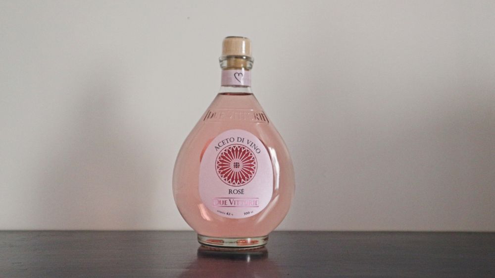 ロゼワインを思わせるワインビネガーです。ただのお酢がこんなにオシャレになるなんて。よくよく見ると、木製キャップ部分の下のテーピングには♡マークまであります。いや〜、かわいい!使うのがもったいなく、台所の飾りにしたい感じ。サラダに添えてこんなお酢が出されたら、気分も上がっちゃうってもんです。お酢までもがこんなにシャレているなんて、イタリアって国はなんでもとことんオシャレを目指す国なんだなあと。値段はごく普通の他のお酢に比べると少し割高でしたが、お酢のくせにかわいいなんて〜という意外性への感動に投資。